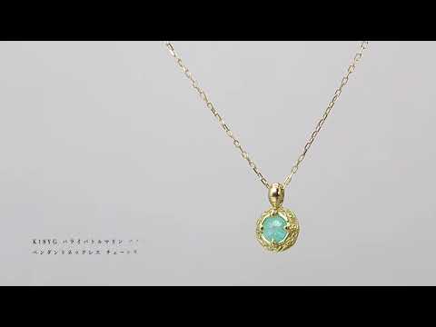 ネオンのような発色を見せるバフトップカットのパライバトルマリン。胸元を印象的に彩るペンダントネックレスが2点新登場