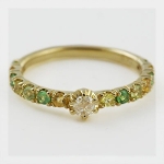 ※ホワイトゴールドではお作りできません。マルチカラー7石の宝石ドッツリング「オリーブ」