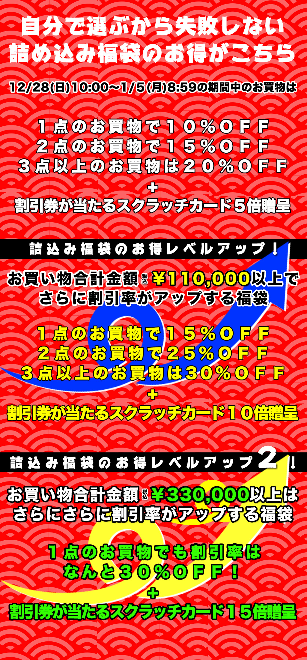 福袋開催期間中に買えば買うほどお得がどんどんアップ!